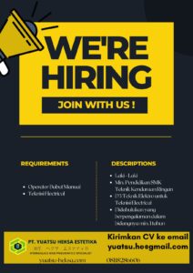 Membutuhkan :- Operator Bubut.- Teknisi Listrik. Kualifikasi :- Laki-Laki.- Mempunyai pengalaman di bidang tersebut selama 1 tahun.- Max. Umur 30...